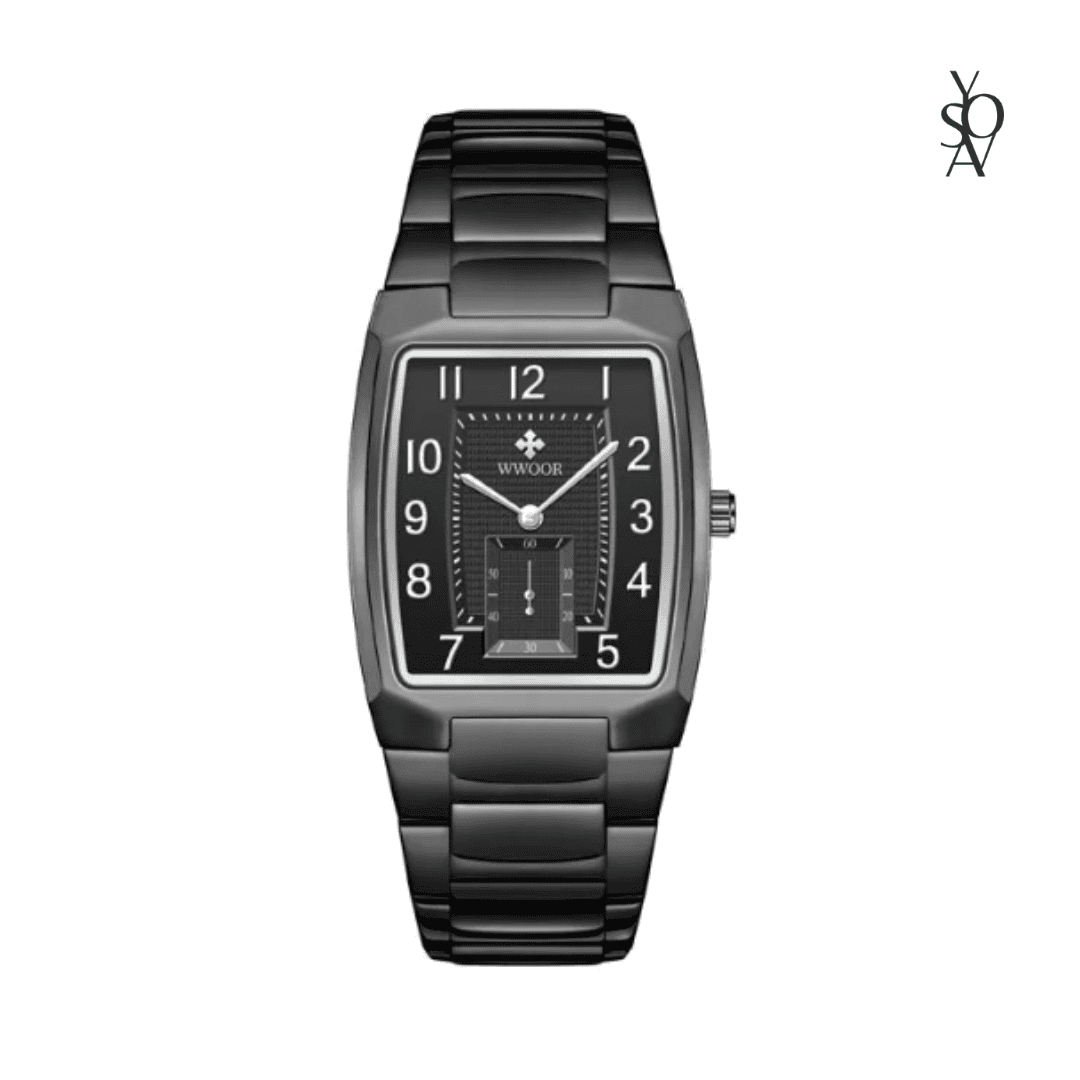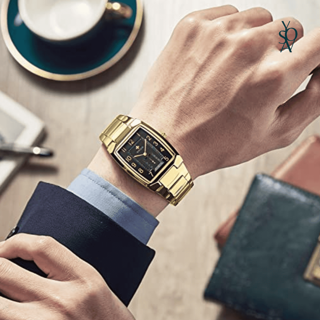 Elevate your style with this elegant and sophisticated watch, featuring a unique rectangular dial design. The striking combination of a rose gold-tone case and a sleek black strap offers a perfect blend of modernity and luxury. Ideal for any occasion, its refined aesthetic ensures you'll always make a statement. Experience precision and style with this exceptional timepiece.