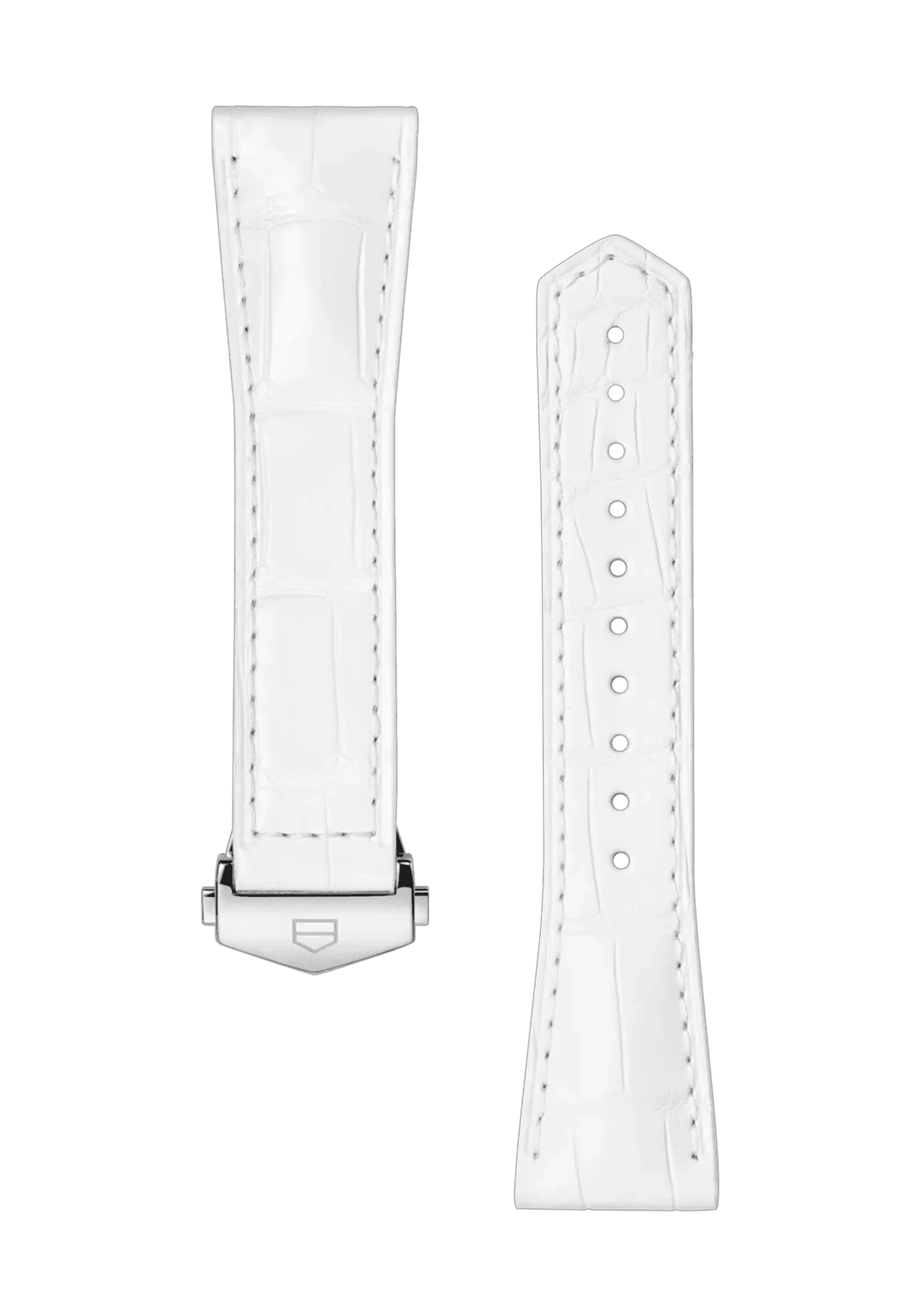 Enhance your timepiece with this exquisite white alligator leather strap, designed to complement both professional and casual settings. The luxurious texture and refined finish highlight sophistication and style for any occasion. Made with precision and care, this strap promises durability and comfort, making it an essential addition to your watch collection.