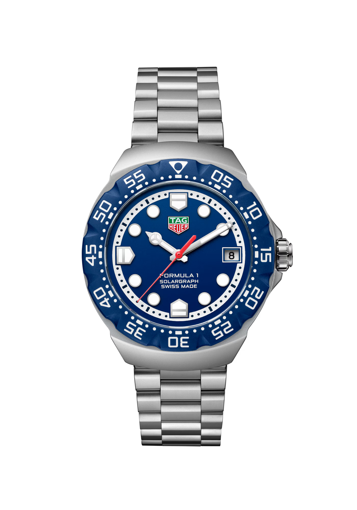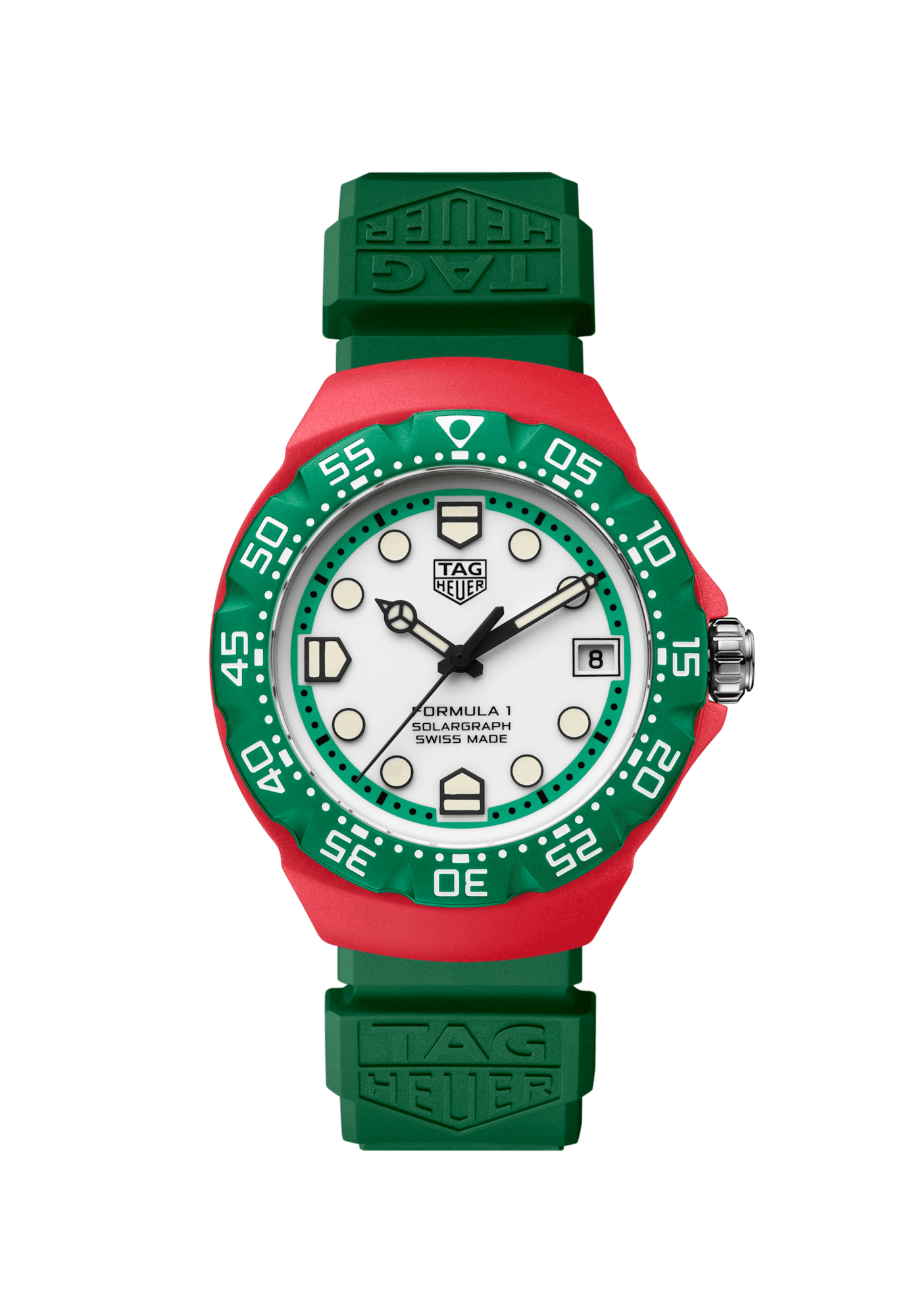 Reinvented for the contemporary era, the TAG Heuer Formula 1 Solargraph (38mm) brings a modern and expressive spirit with its white dial and striking green accents. Powered by Solargraph technology, it blends advanced performance with a vibrant, youthful design.