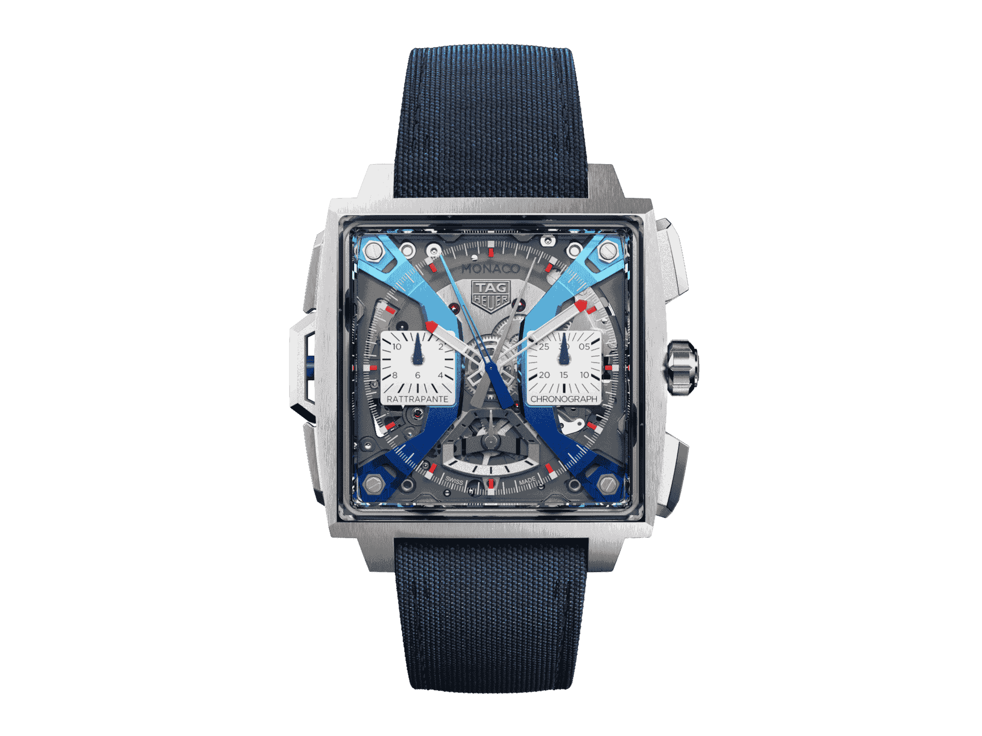 The avant-garde spirit of TAG Heuer comes to the fore in the TAG Heuer Monaco Split-Seconds Chronograph. A striking fusion of tradition and innovation, this incredible timepiece features the highly sophisticated split-seconds complication, now encased in a modern reinterpretation of the Monaco’s iconic square design.