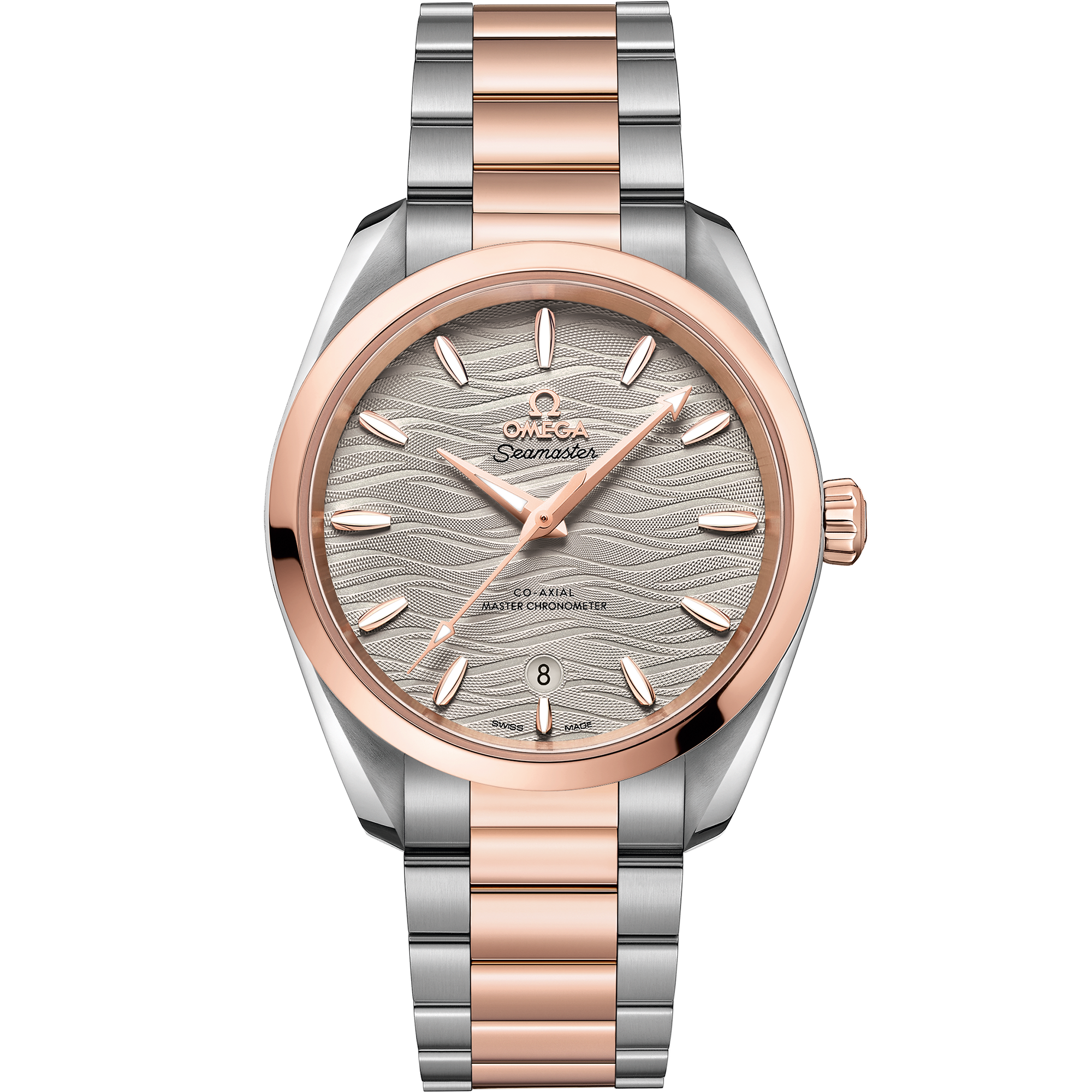 Omega Seamaster Aqua Terra men's watch with blue wave dial, rose gold and steel bracelet