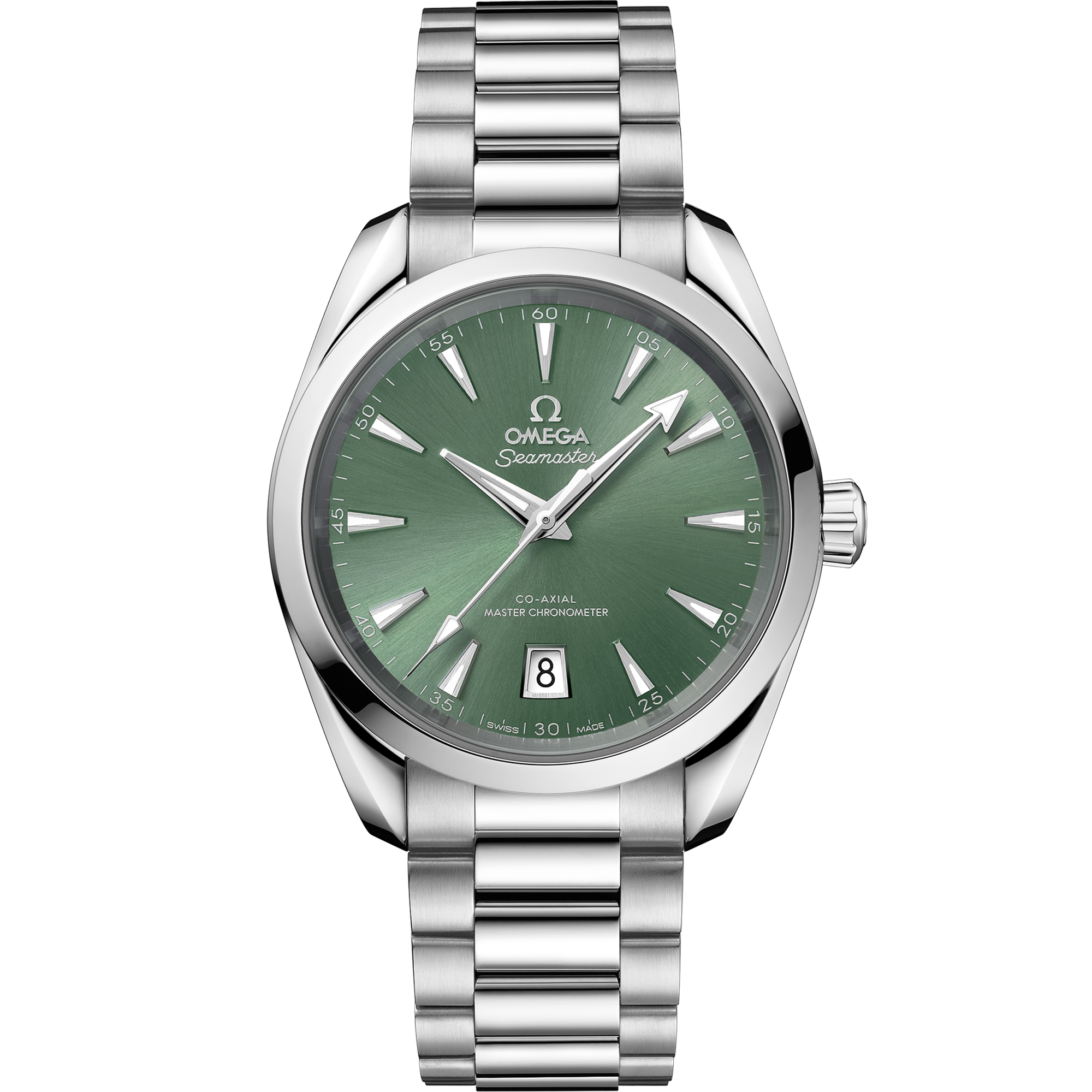 Omega Seamaster Aqua Terra Co-Axial Master Chronometer men's watch with green dial and stainless steel bracelet
