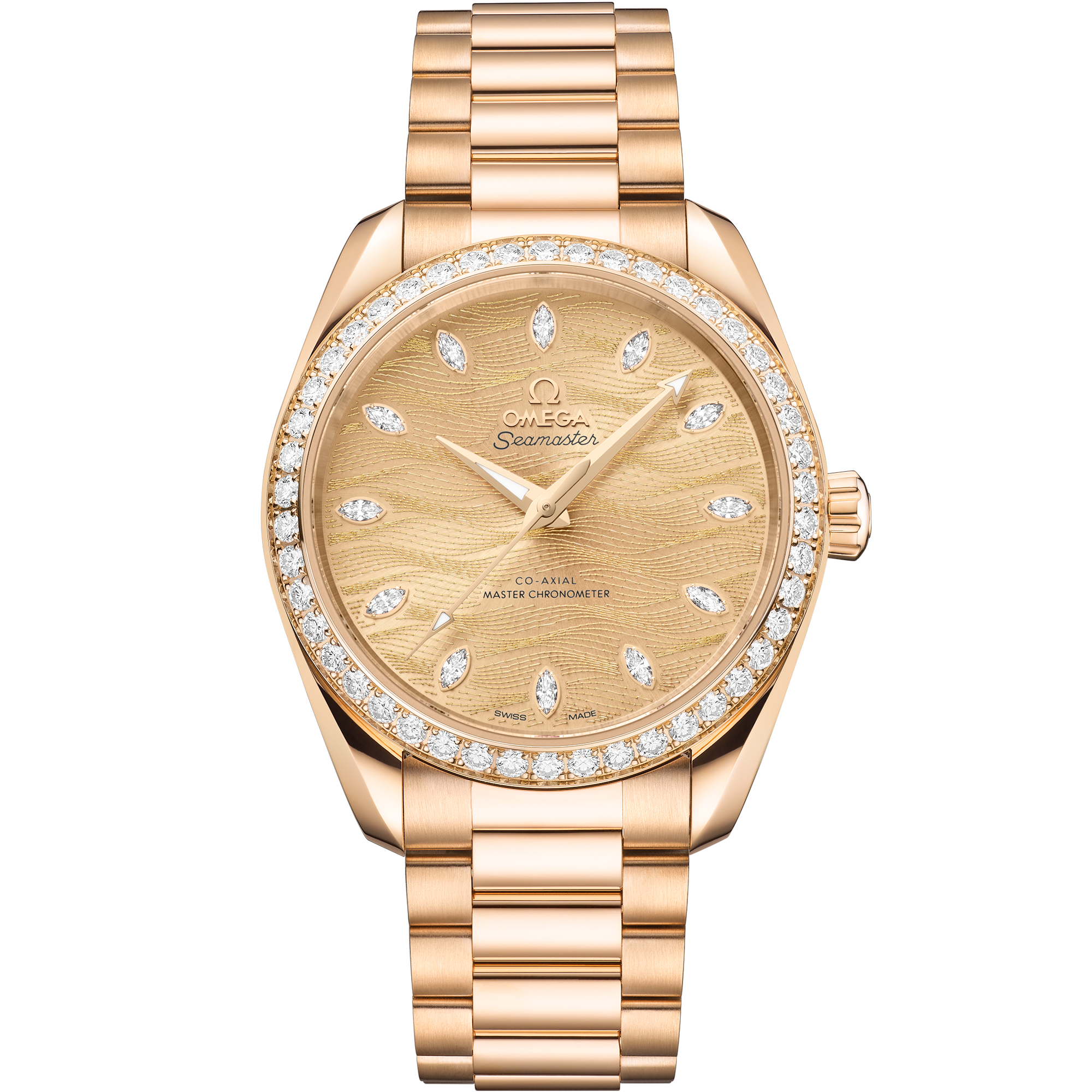 Omega Seamaster Aqua Terra rose gold men’s watch with diamond bezel and date display