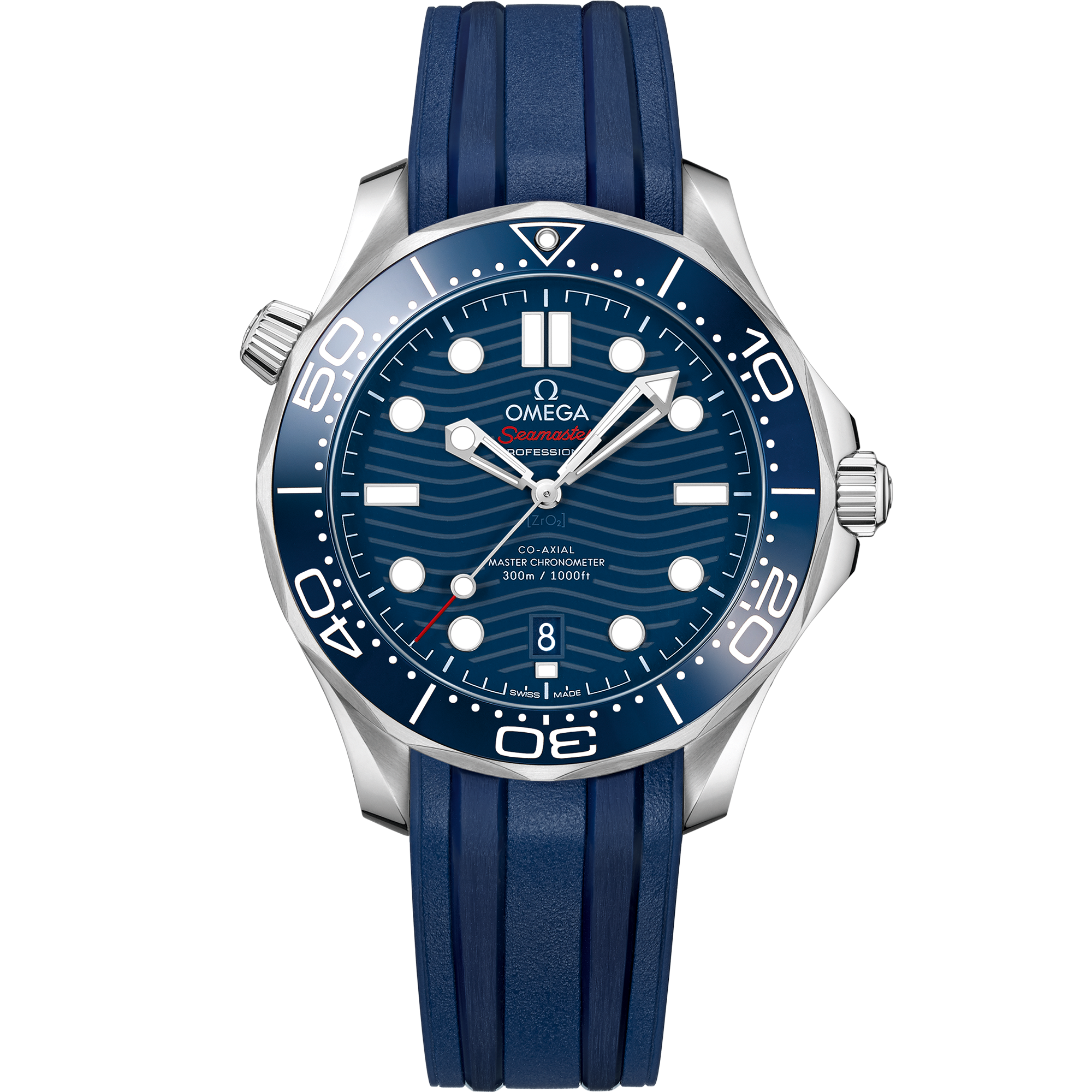Omega Seamaster Diver 300M men's watch with blue dial and blue rubber strap, premium design