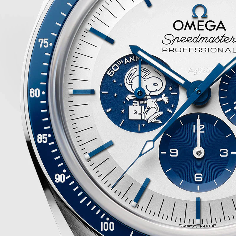 This 50th anniversary commemorative watch pays homage to the "Silver Snoopy Award" it received from NASA astronauts in 1970, in recognition of the brand's contributions to space exploration, including the Apollo 13 mission.